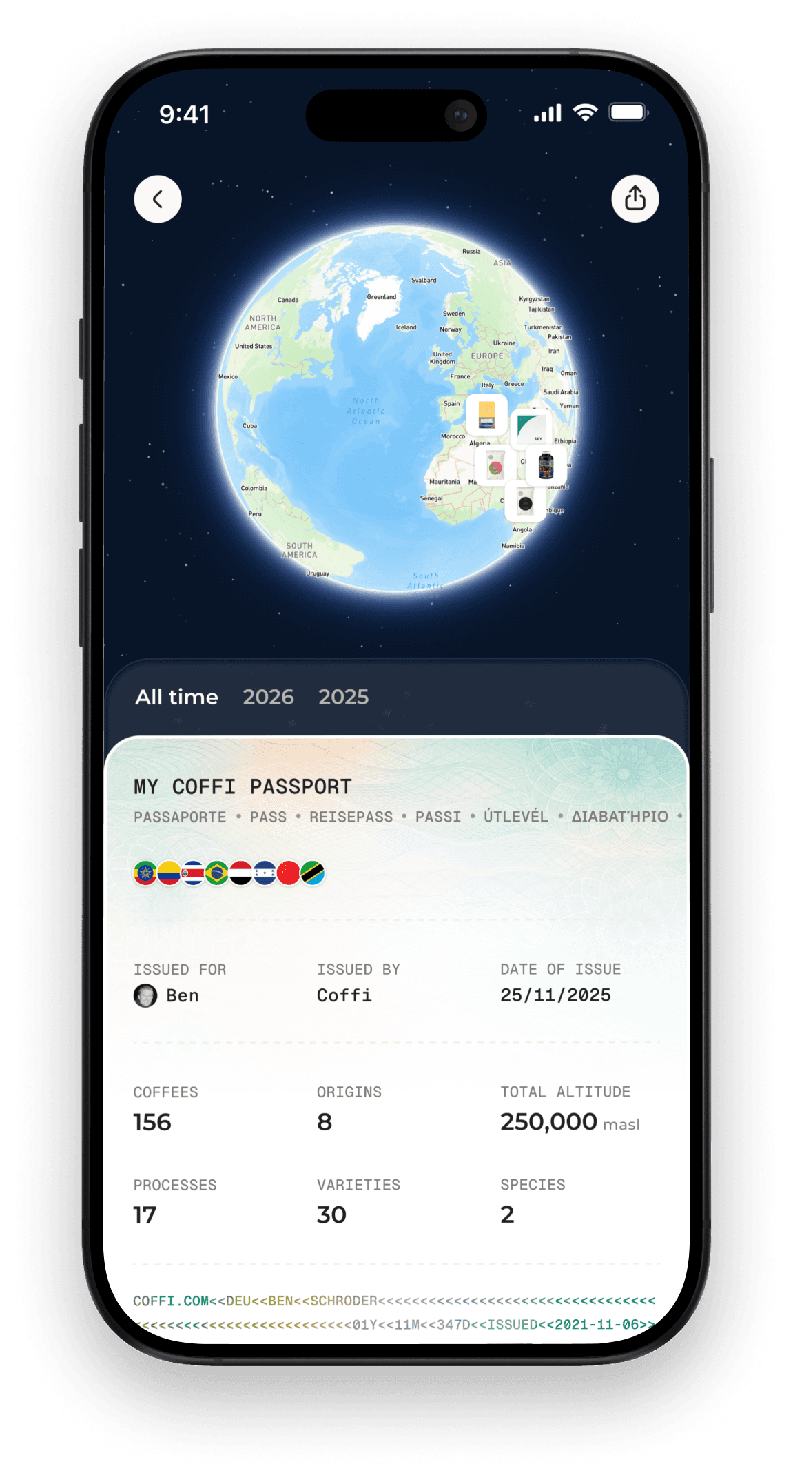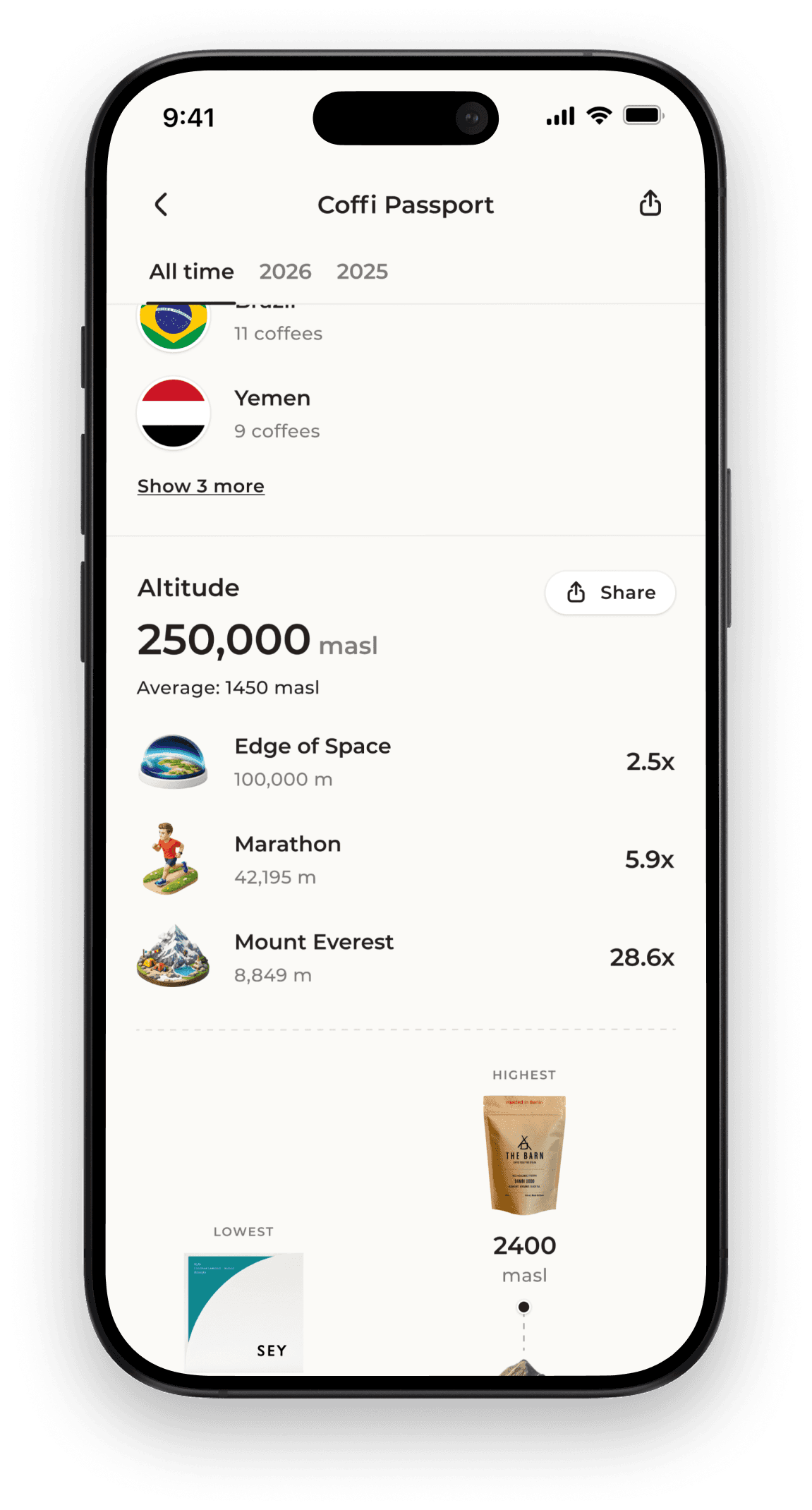 From origins and flavors to roasters and altitudes, your Coffi Passport turns every coffee you try into a thoughtfully organized, visual record you can see anytime.